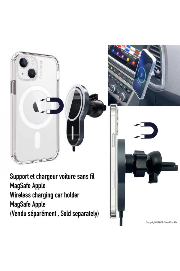 Cette coque est équipée d’aimants intégrés qui s’ajustent parfaitement à l’iPhone 14, la coque se fixe très facilement et permet une recharge sans fil plus rapide. Pour recharger votre iPhone, il vous suffit de le laisser dans sa coque et d’y fixer votre chargeur MagSafe ou de le déposer sur votre chargeur certifié Qi.